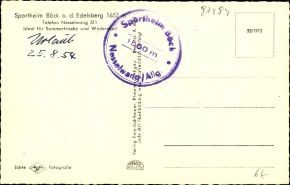 Ak Nesselwang im Allgäu, Sportheim Böck auf dem Edelsberg