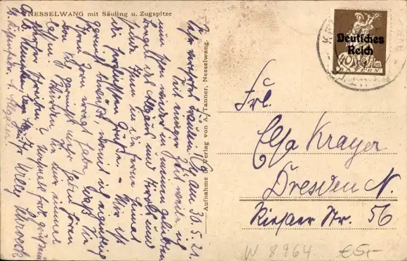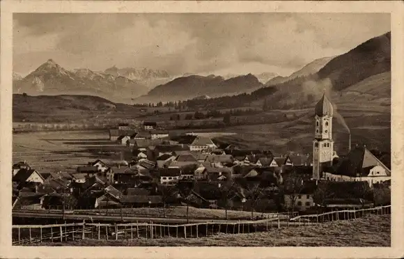 Ak Nesselwang im Allgäu, Totalansicht, Kirche, Säuling, Zugspitze