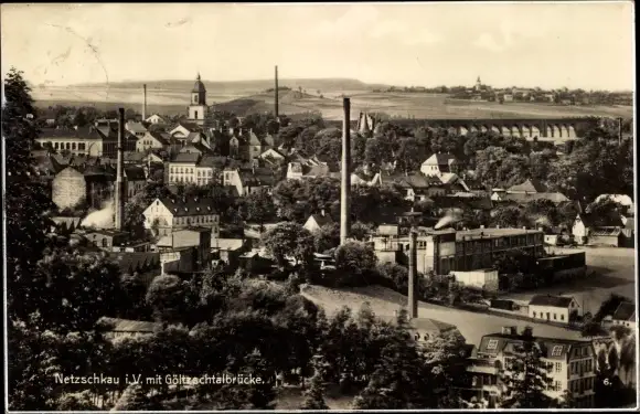Ak Netzschkau im Vogtland, Teilansicht mit Göltzschtalbrücke
