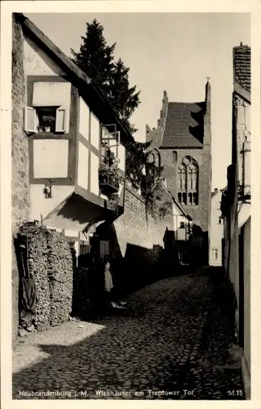 Ak Neubrandenburg, Wiekhäuser am Treptower Tor, Gasse, Holzscheite, Windhäuser