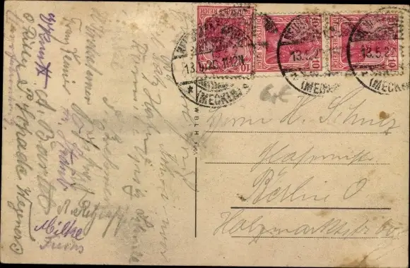 gelaufen 1920, Einriss, fleckig, sonst guter Zustand