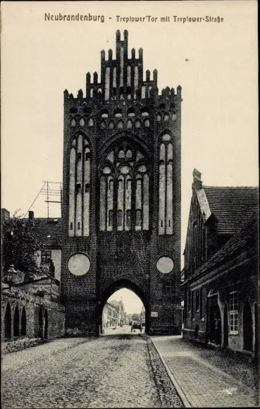 Ak Neubrandenburg in Mecklenburg, Treptower Tor, Treptower Straße