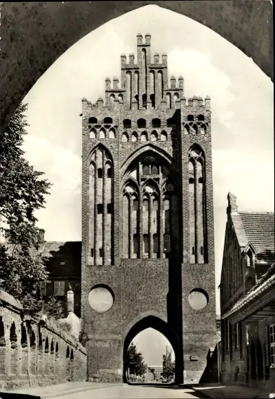 Ak Neubrandenburg in Mecklenburg, Treptower Tor, gotische Architektur, Schwarz-Weiß-Foto