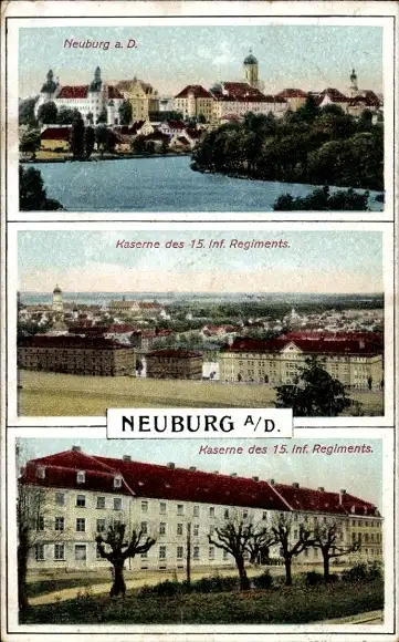Ak Neuburg an der Donau Oberbayern, Kaserne 15. Infanterie Regiment, Panorama