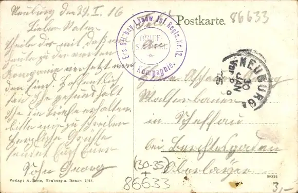 Zustand, siehe Scan, gelaufen, 1916 - ca 14 cm X 9 cm