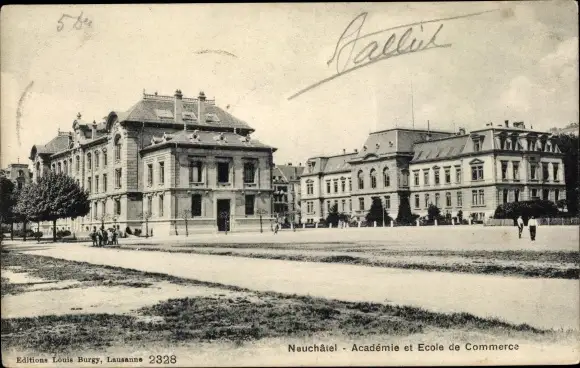 Ak Neuchâtel Neuenburg Stadt, Academie et Ecole de Commerce