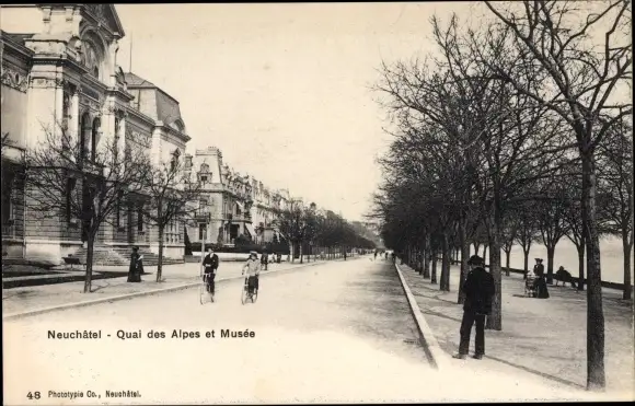 Ak Neuchâtel Neuenburg Stadt, Quai des Alpes et Musee