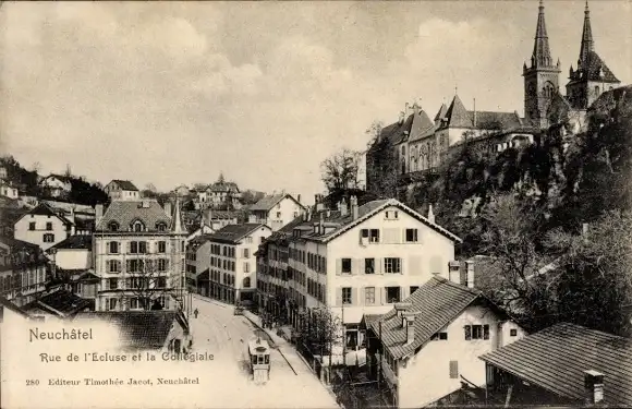 Ak Neuchâtel Neuenburg Stadt, Rue de l'Ecluse et la Collegiale