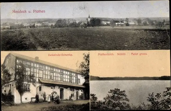 Ak Neudeck Plothen in Thüringen, Gemeindeschenke, Plothenteich, Blick auf den Ort