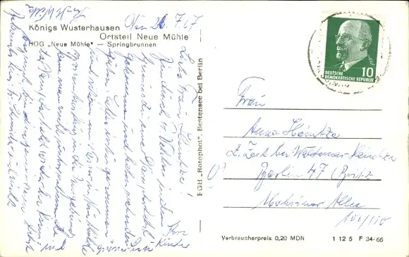 Ak Neue Mühle Königs Wusterhausen in Brandenburg, HOG Neue Mühle, Springbrunnen