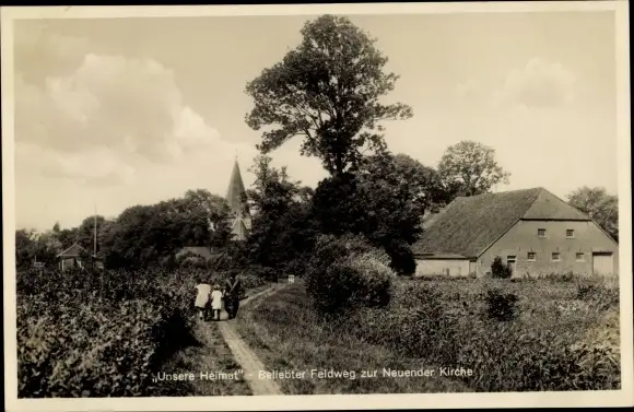 Ak Neuende Wilhelmshaven in Niedersachsen, Feldweg, Neuender Kirche