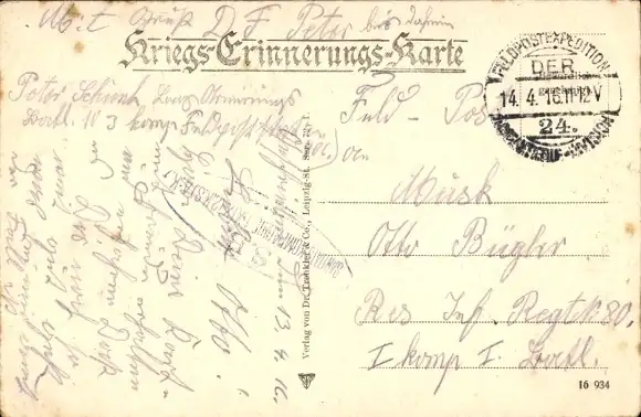 Zustand, siehe Scan, gelaufen, 1916 - ca 9 cm X 14 cm