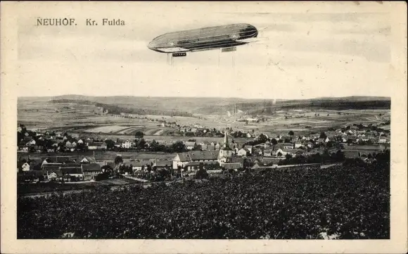 Ak Neuhof bei Fulda Hessen, Panorama, Zeppelin über dem Ort