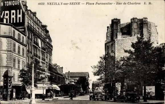 Ak Neuilly sur Seine Hauts de Seine, Place Parmentier, Rue de Chartres