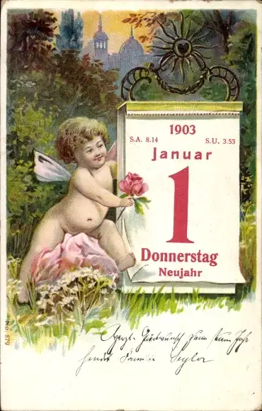 Ak Neujahr, 1. Januar 1903, Engel mit Kalender