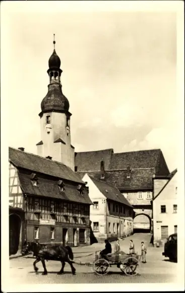 Ak Neumark in Sachsen, Marktplatz, Kutsche