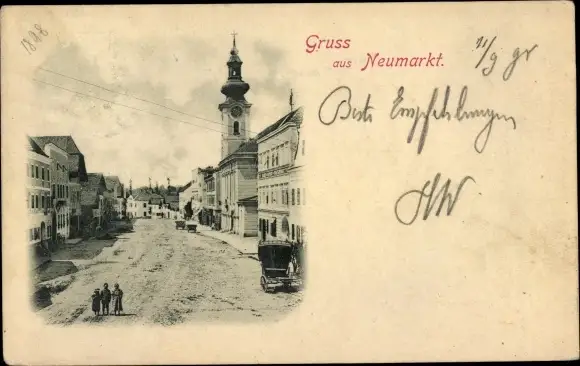 Ak Neumarkt in der Steiermark, Straßenpartie mit Kirche