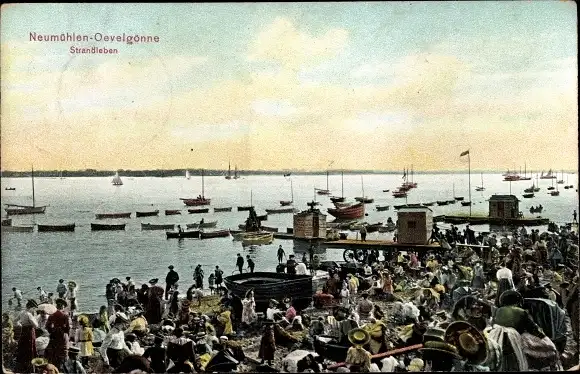 Ak Neumühlen Hamburg Altona Othmarschen, Partie am Strand, Meer, Boote