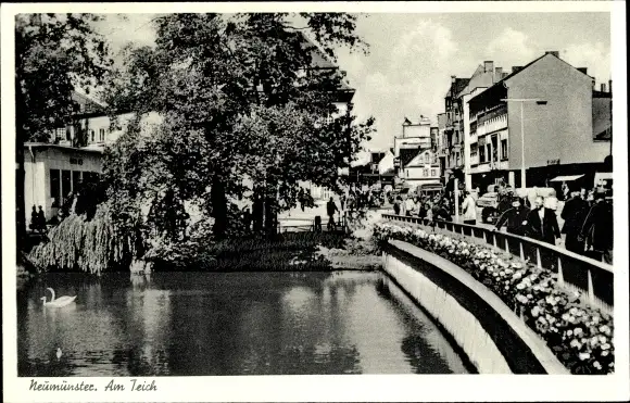 Ak Neumünster in Holstein, Am Teich, Straßenpartie