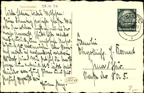 Zustand, siehe Scan, gelaufen, 1938 - ca 15 cm X 9 cm