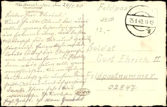 Zustand, siehe Scan, gelaufen, 1940 - ca 15 cm X 9 cm