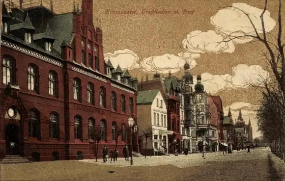 Ansichtskarte, Postkarte, Postamt, Post, Hauptpost, Postkasten, Briefkasten