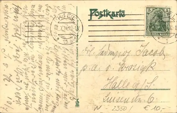 Zustand, siehe Scan, gelaufen, 1912 - ca 14 cm X 9 cm