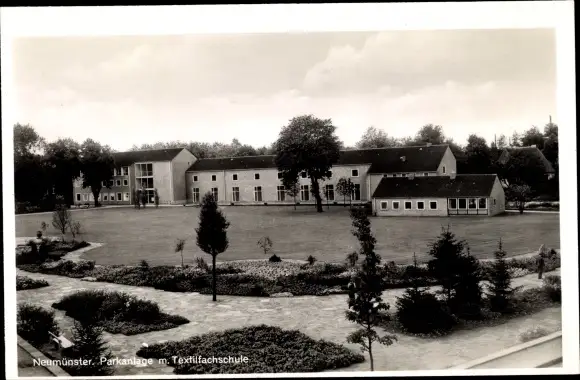 Ak Neumünster in Holstein, Parkanlage, Textilfachschule