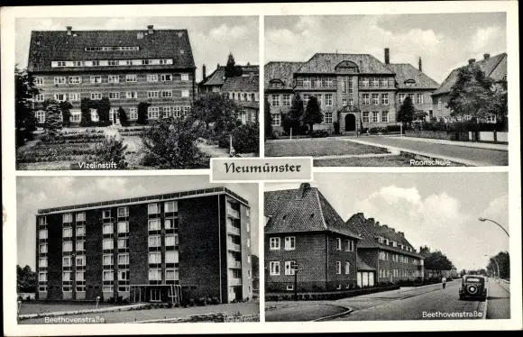 Ak Neumünster in Holstein, Vizelinstift, Roonschule, Beethovenstraße
