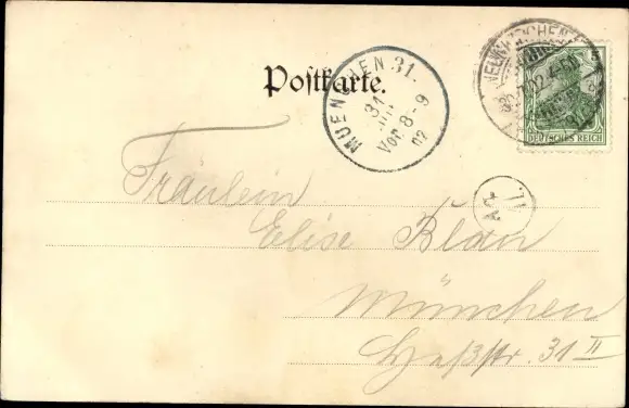 Zustand, siehe Scan, gelaufen, 1902 - ca 14 cm X 9 cm