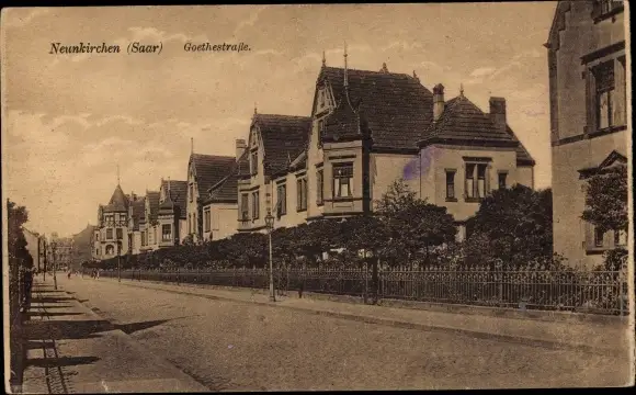 Ak Neunkirchen im Saarland, Villen in der Goethestraße, Zaun, Laternen