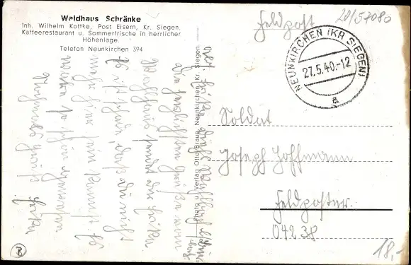 Ak Neunkirchen im Siegerland, Waldhaus Schränke
