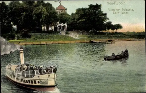 Ak Neuruppin in Brandenburg, Ruppiner Schweiz, Café Alsen, Dampfer