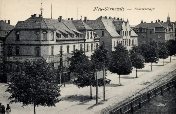 Ak Neusörnewitz Coswig in Sachsen, Fabrikstraße, Manufakturwaren