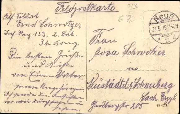 Zustand, siehe Scan, gelaufen, 1915 - ca 14 cm X 9 cm