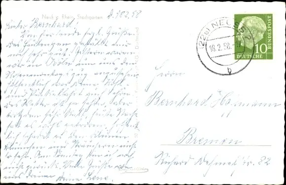 Zustand, siehe Scan, gelaufen, 1958 - ca 14 cm X 9 cm