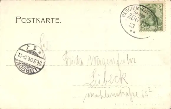 Zustand, siehe Scan, gelaufen, 1904 - ca 14 cm X 9 cm