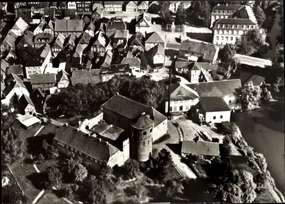 Ak Neustadt Glewe in Mecklenburg, Burg, Vogelschau
