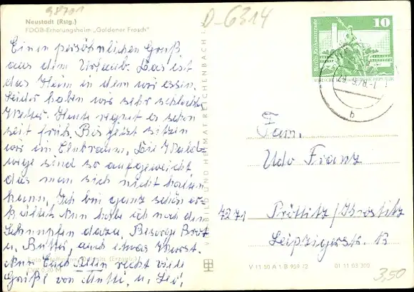 Ak Neustadt am Rennsteig Großbreitenbach in Thüringen, FDGB Erholungsheim Goldener Frosch