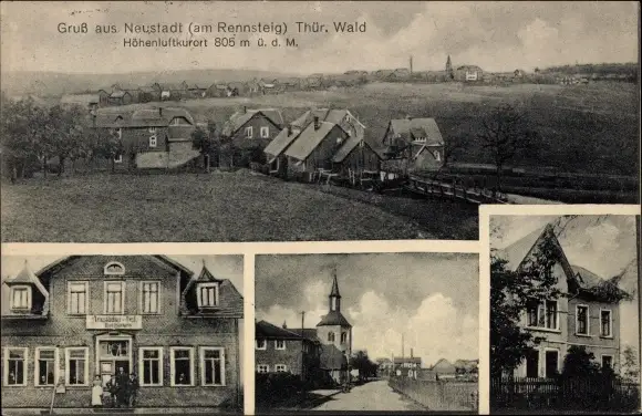 Ak Neustadt am Rennsteig Großbreitenbach in Thüringen, Panorama, Gasthaus Arnstädter Hof