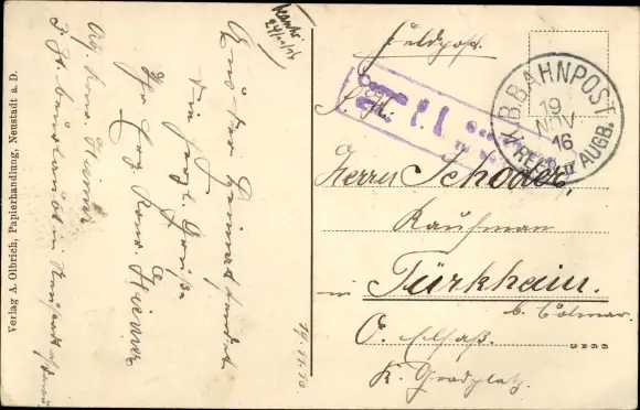 Zustand, siehe Scan, gelaufen, 1916 - ca 14 cm X 9 cm