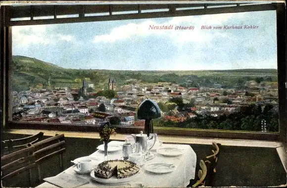 Ak Neustadt an der Haardt a.d.Weinstrasse, Tisch im Kurhaus Kohler, Blick auf die Stadt