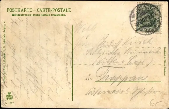 Zustand, siehe Scan, gelaufen, 1907 - ca 14 cm X 9 cm