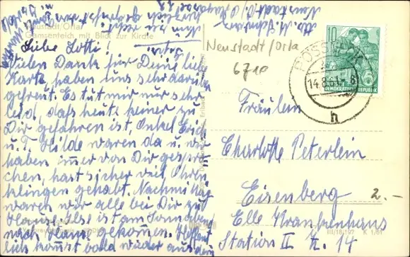 Ak Neustadt an der Orla, Gamsenteich, Kirche