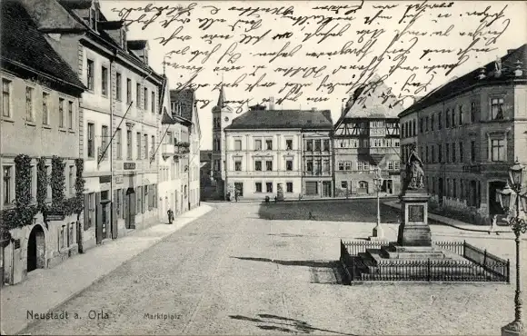 Ak Neustadt an der Orla, Marktplatz, Denkmal