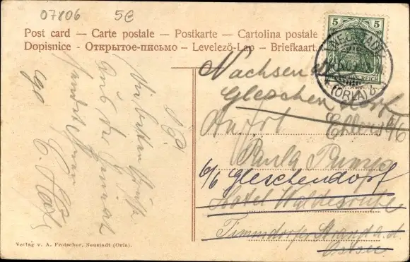 Zustand, siehe Scan, gelaufen, 1909 - ca 14 cm X 9 cm