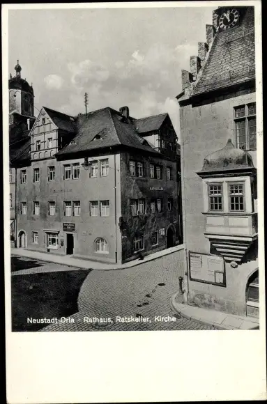 Ak Neustadt an der Orla, Rathaus, Ratskeller, Kirche