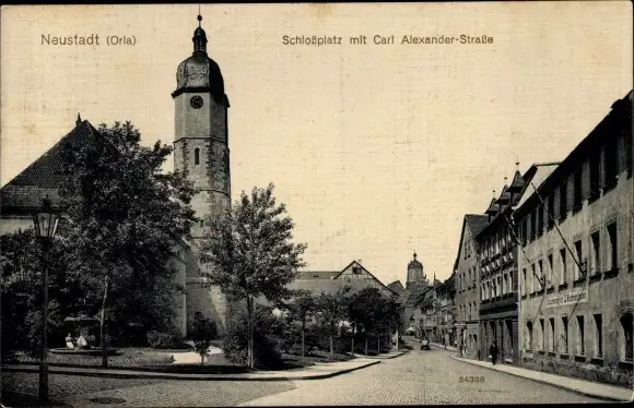 Ak Neustadt an der Orla, Schlossplatz mit Carl Alexander Straße, Kirche, Gasthof