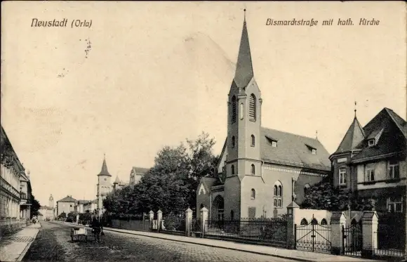 Ak Neustadt an der Orla Thüringen, Bismarckstraße mit Kath. Kirche