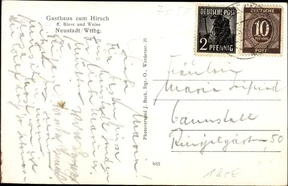 Ak Neustadt an der Rems Waiblingen in Württemberg, Gasthaus zum Hirsch